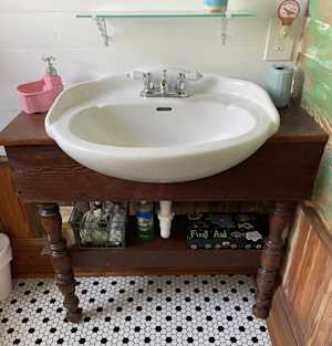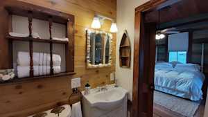 Handmade vanity and cabinet in the private second bathroom