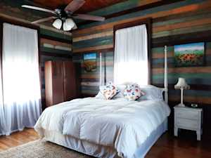 Comfortable queen-sized second bedroom with its own unique style
