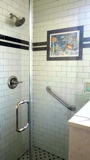 Shower with a decorative finish in the second private bathroom