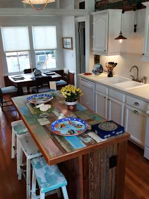 Open kitchen with a handmade island table